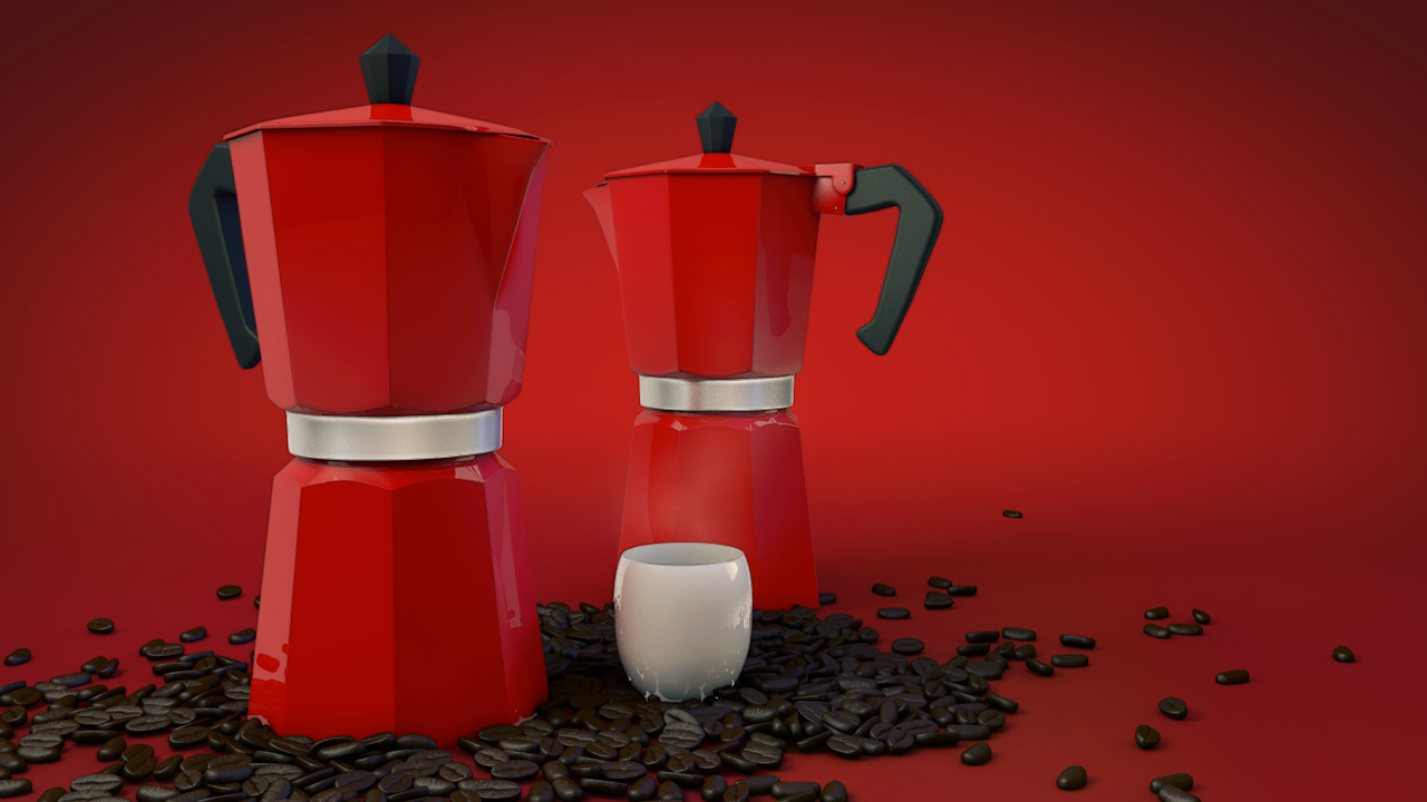 Modeling and texturing of an object. Created as a print advert for the coffee maker. I had fun playing with Cinema's cloning and dynamics with the coffee beans.