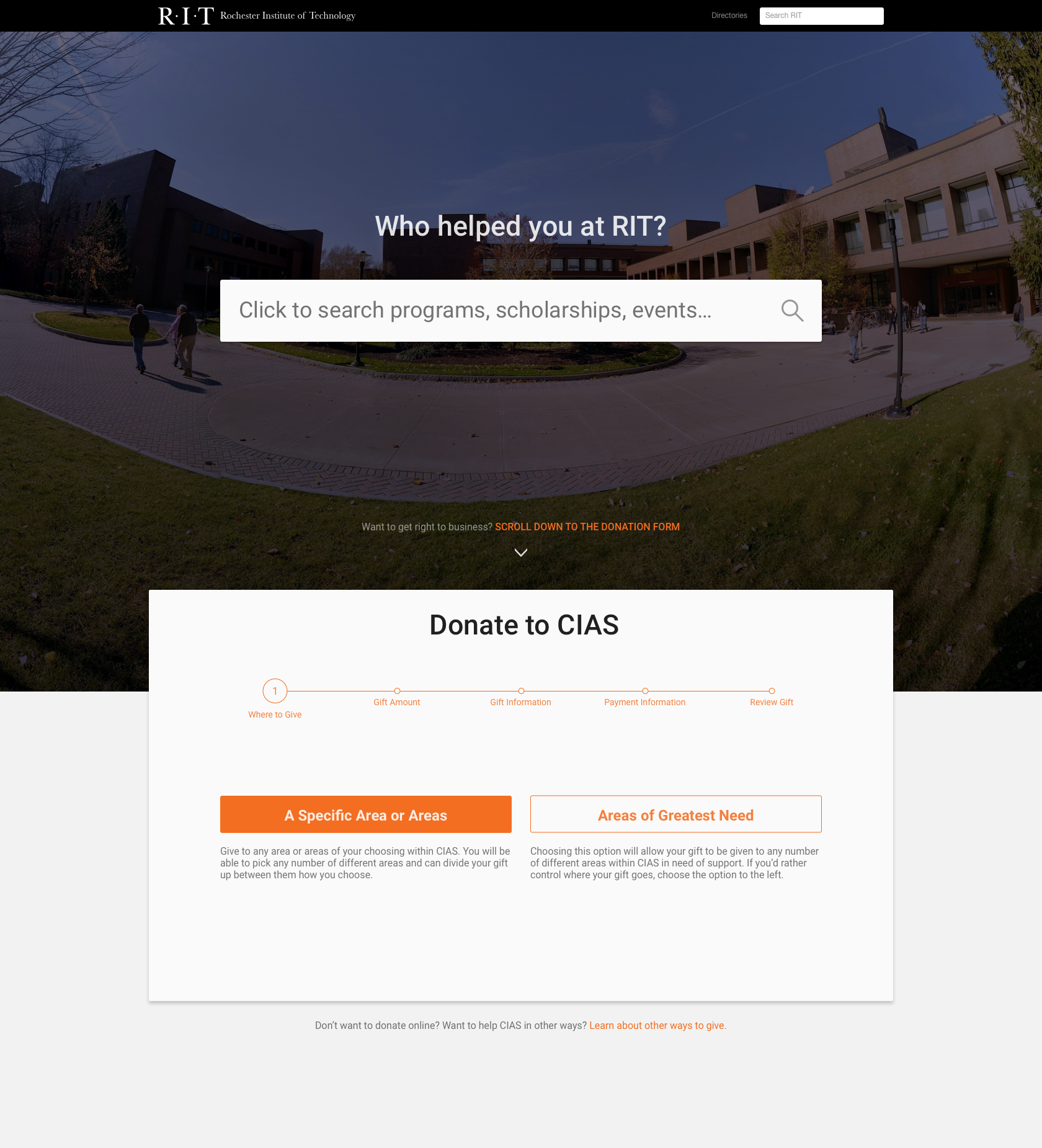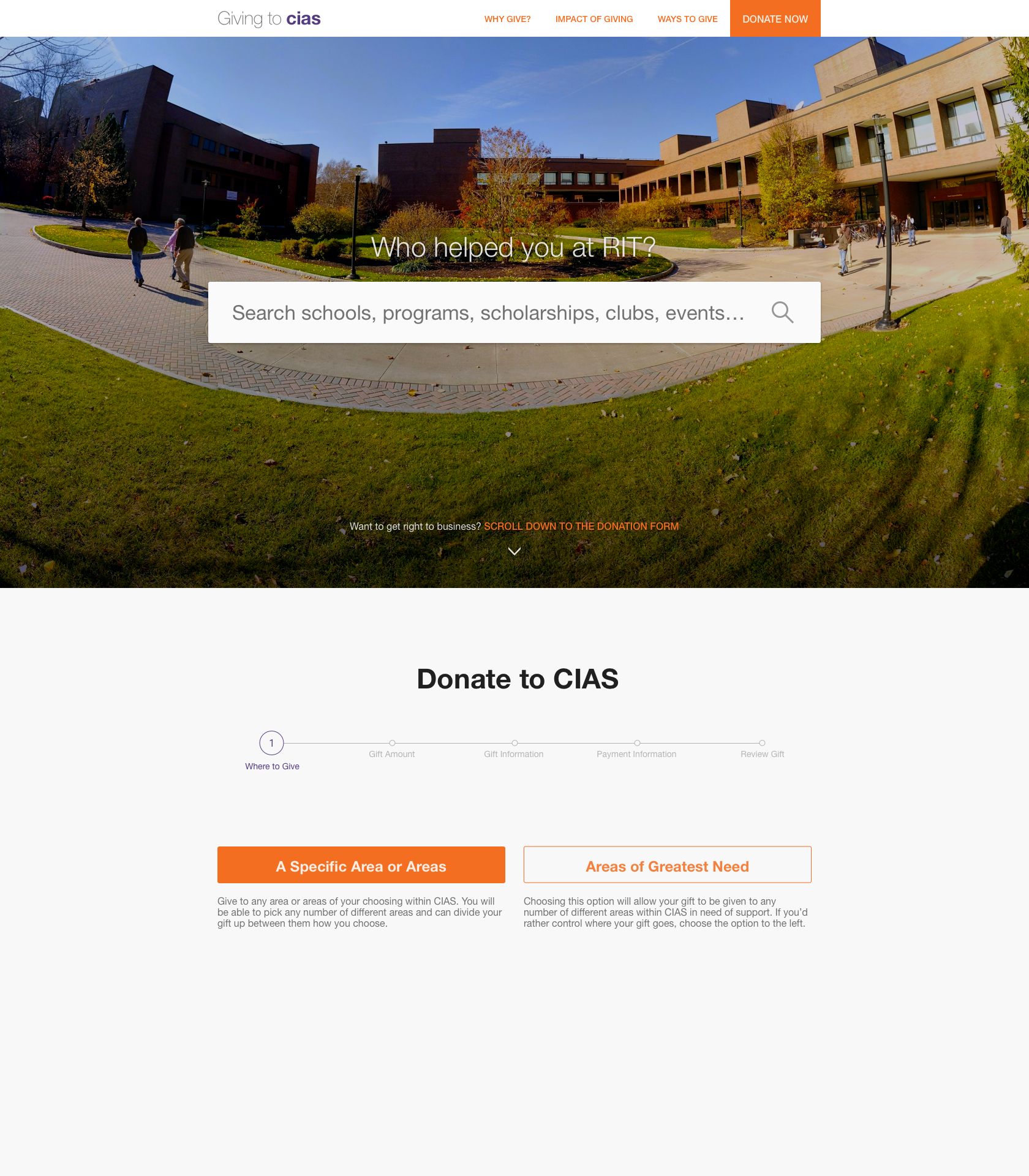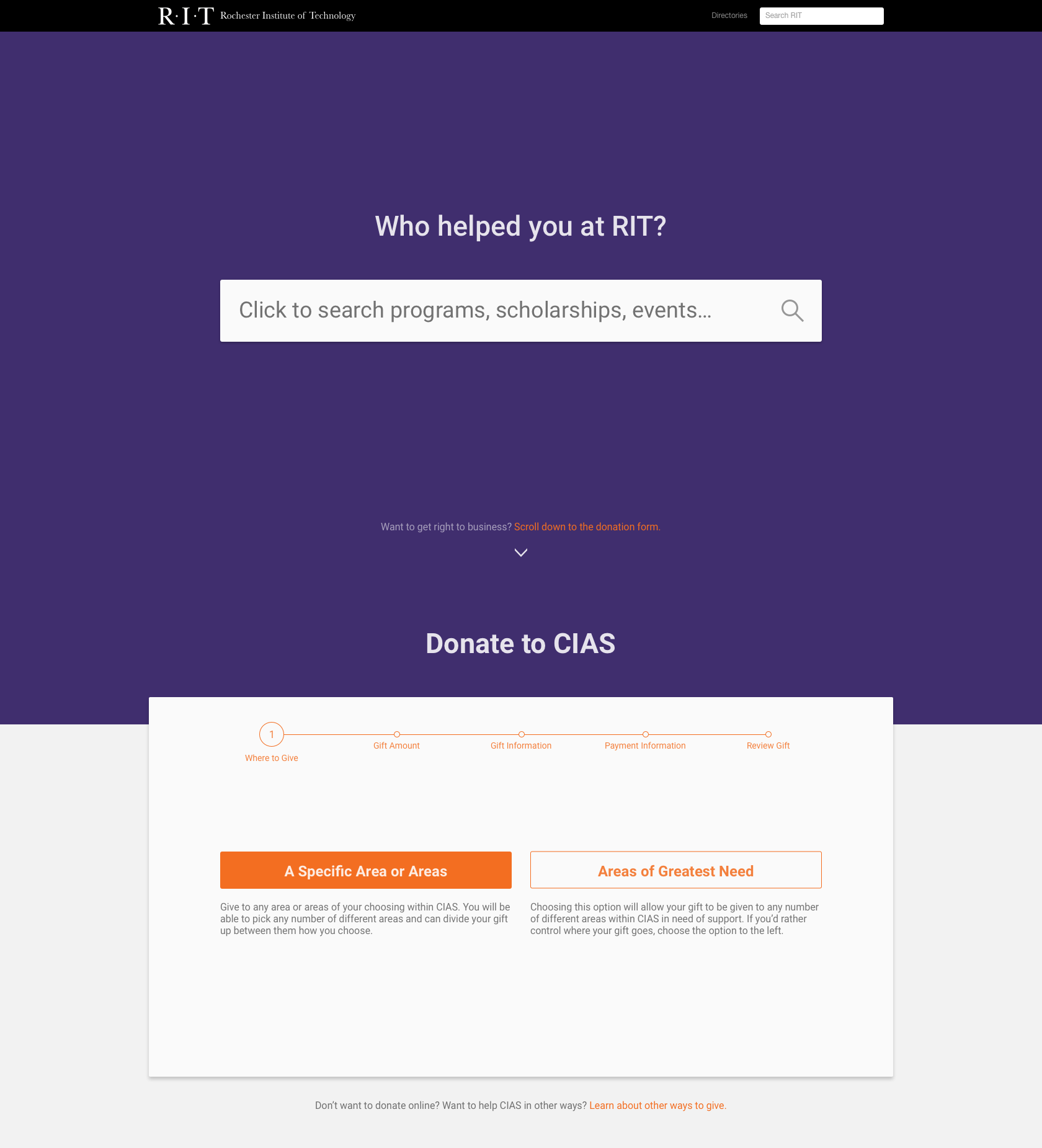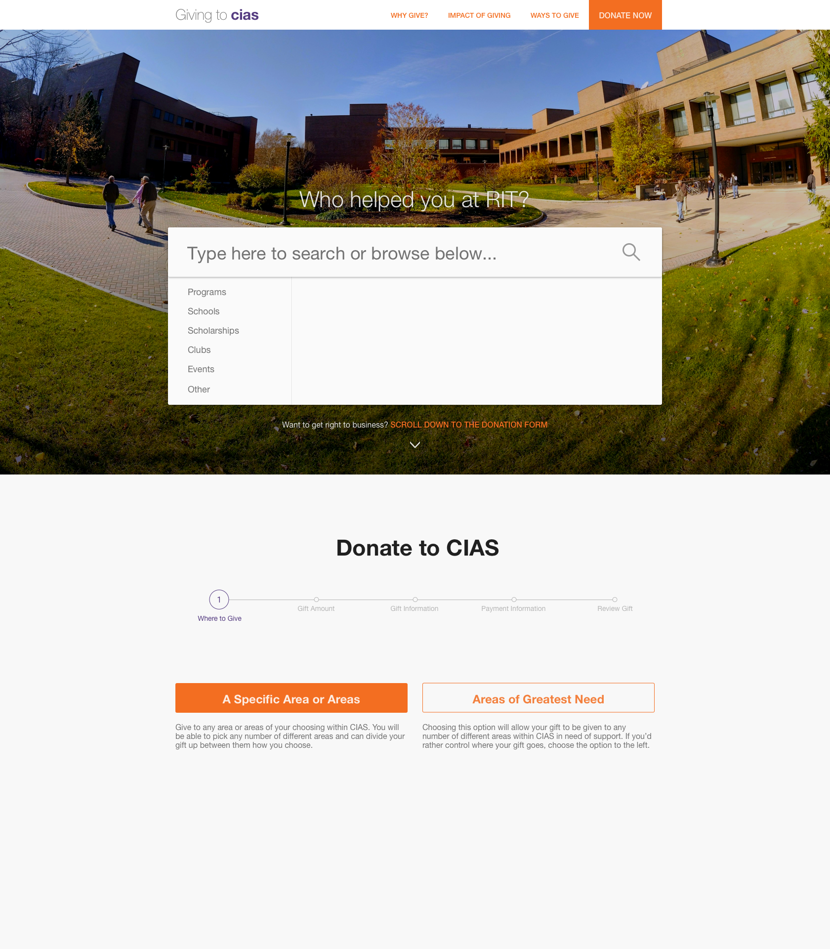 Most donors like to give to individual programs or scholarships within the university, but the current site makes it difficult to find these options.
